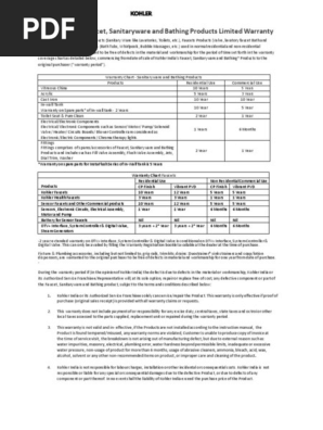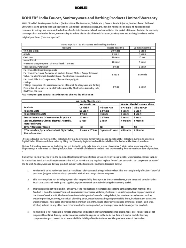 Kohler Warranty Tap Valve Materials